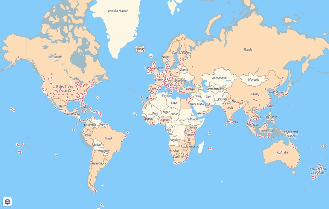 This map provided by: https://beeneverywhere.net/user/Globalhopkins